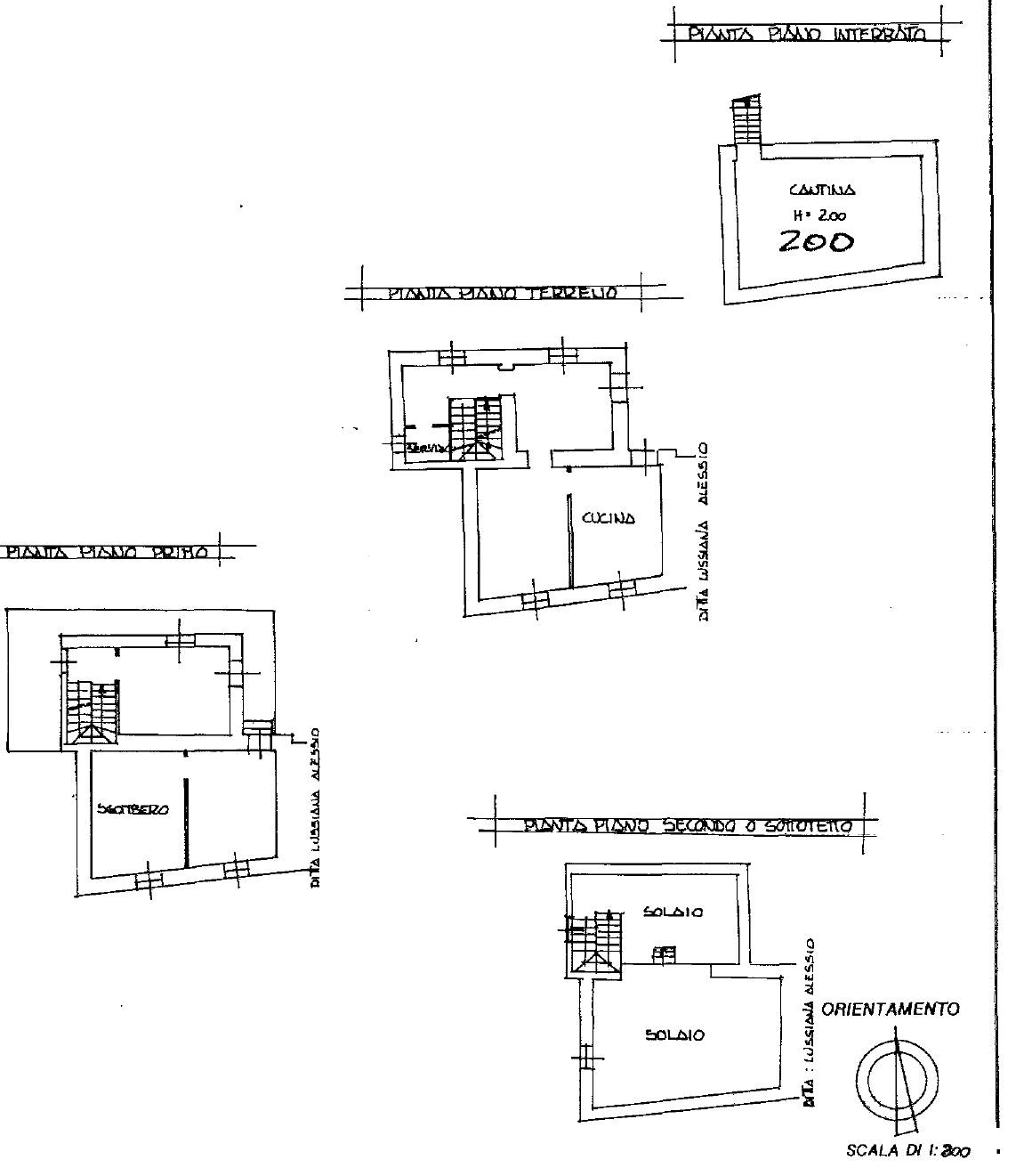 - Piano terra: ingresso su cucina, due camere e bagno.