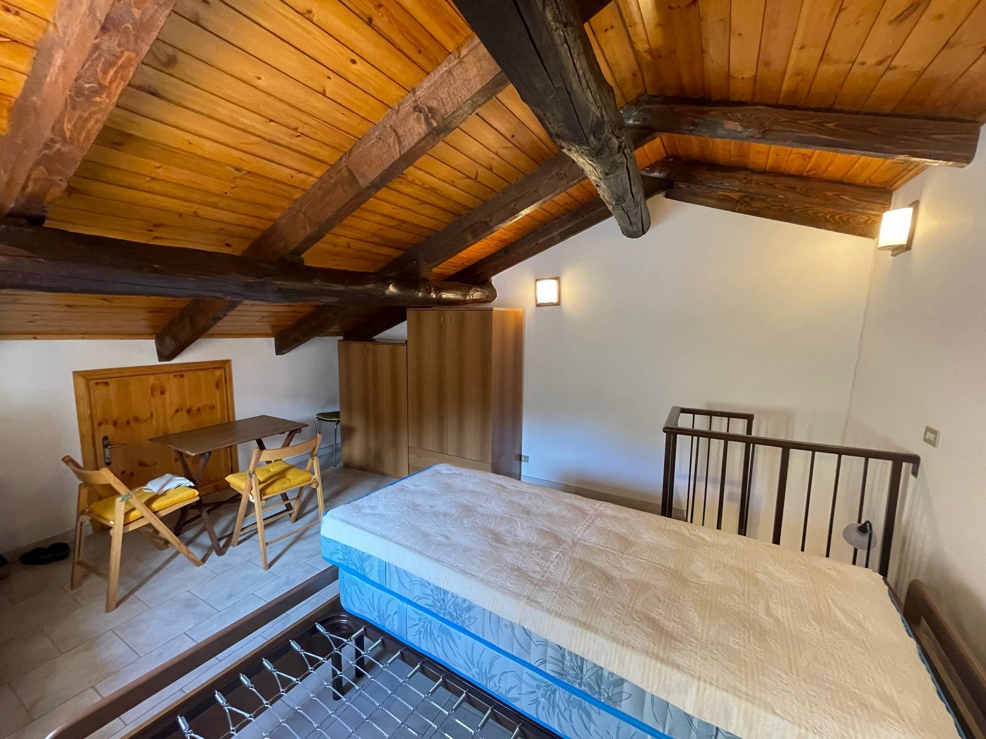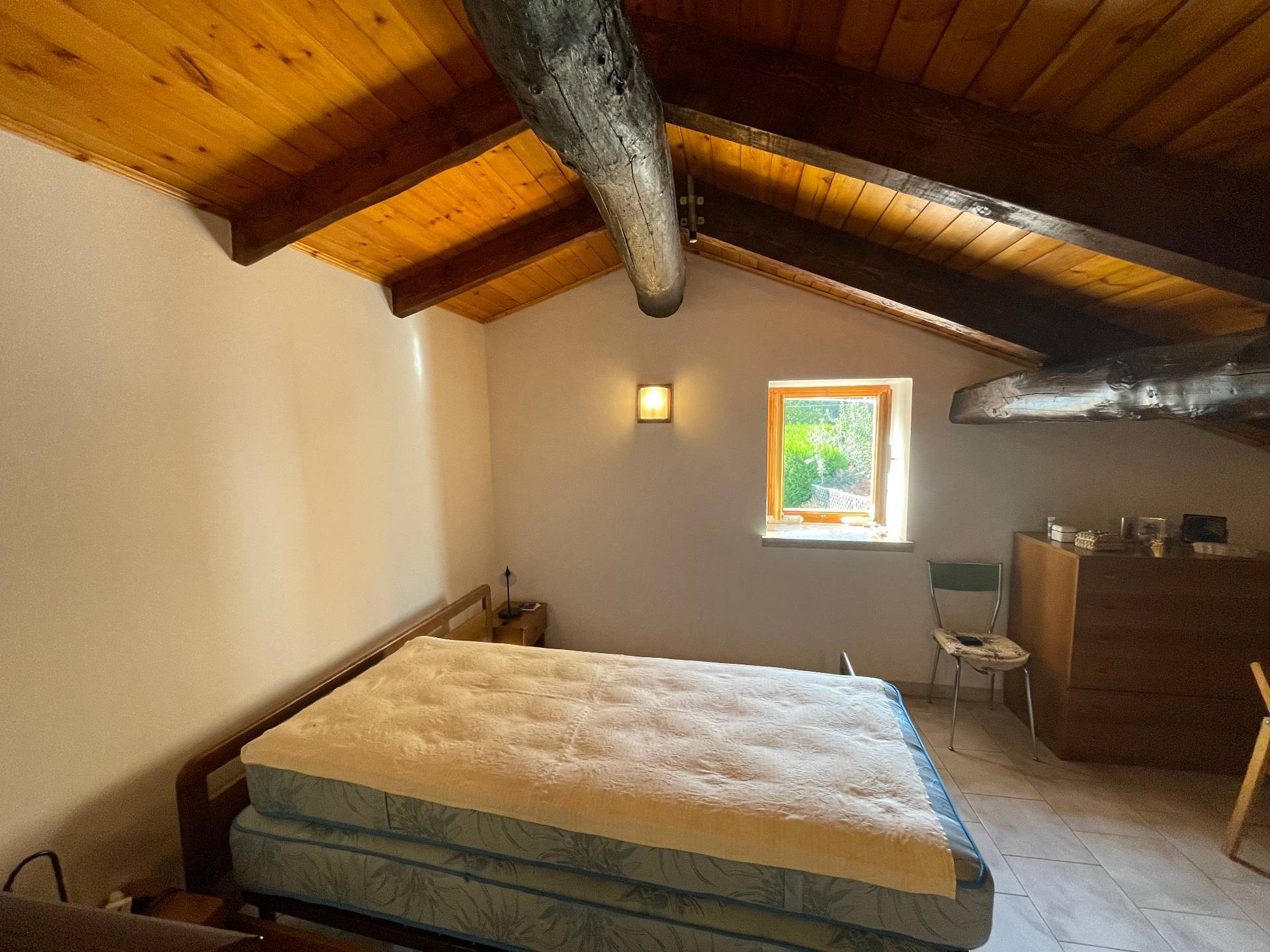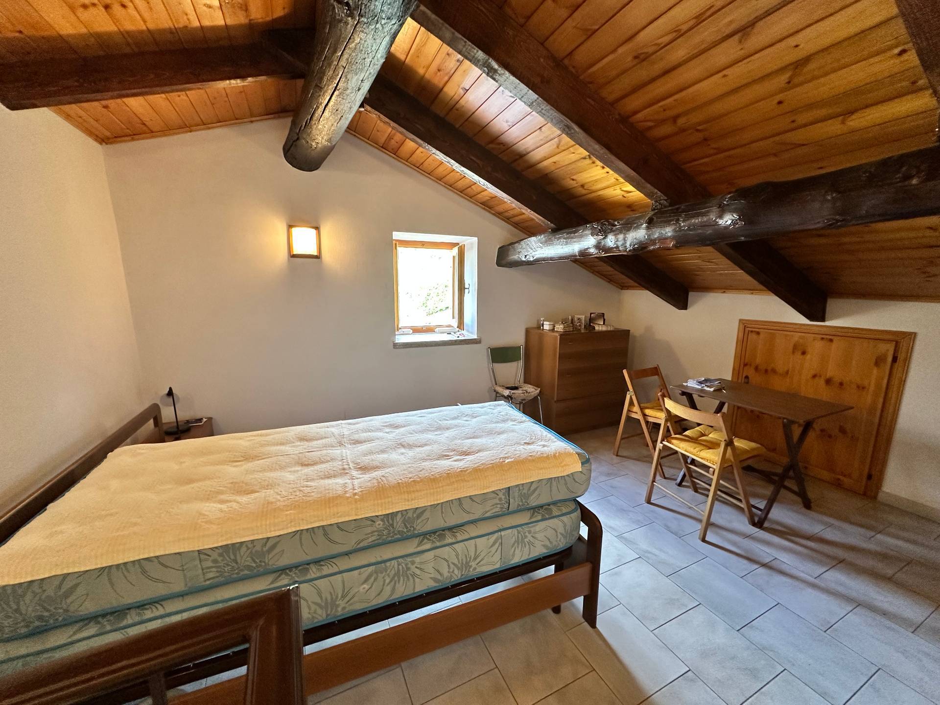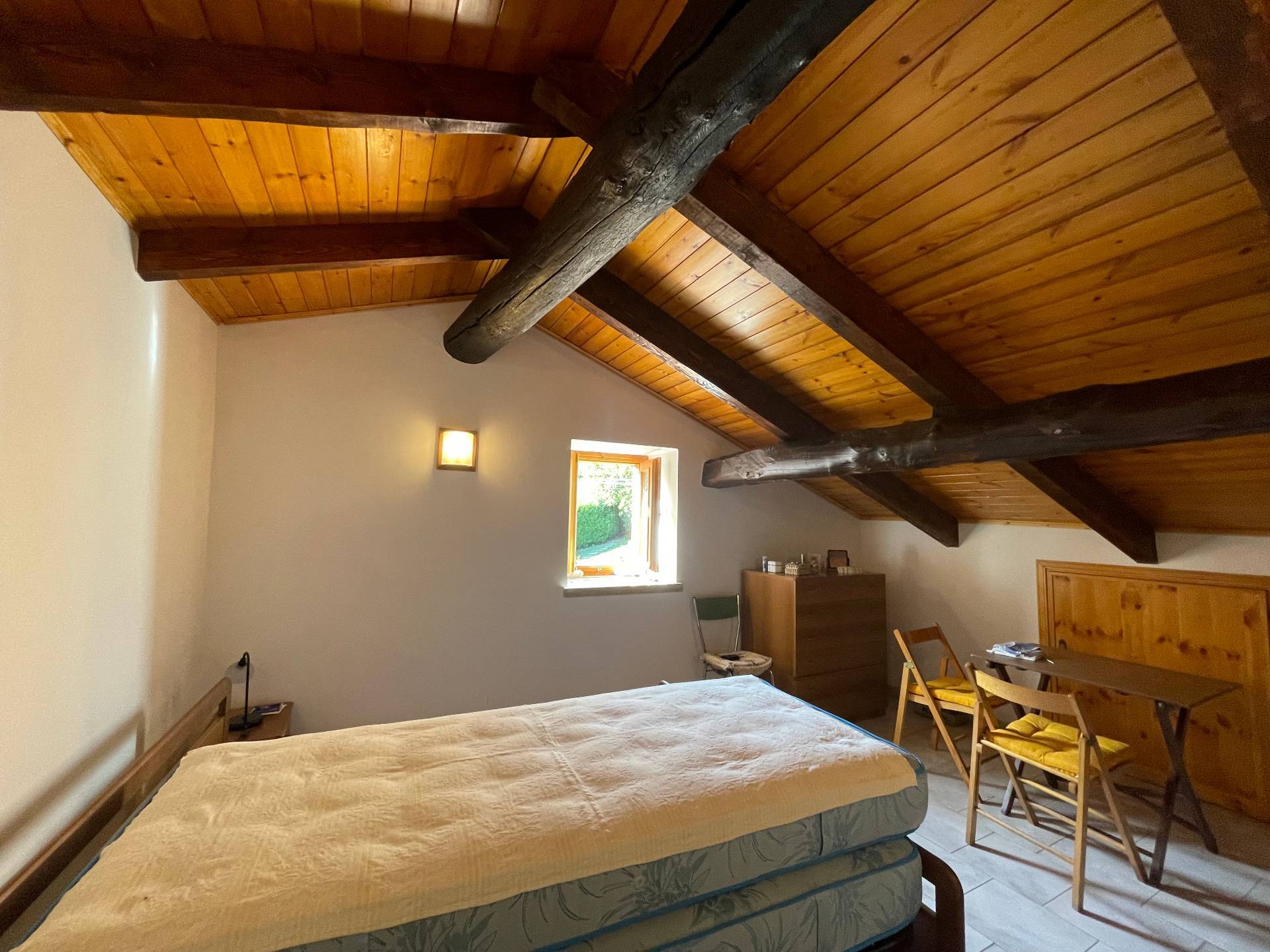 La mansarda, con travi in legno a vista, è uno spazio versatile e suggestivo, ideale come zona notte romantica o studio.