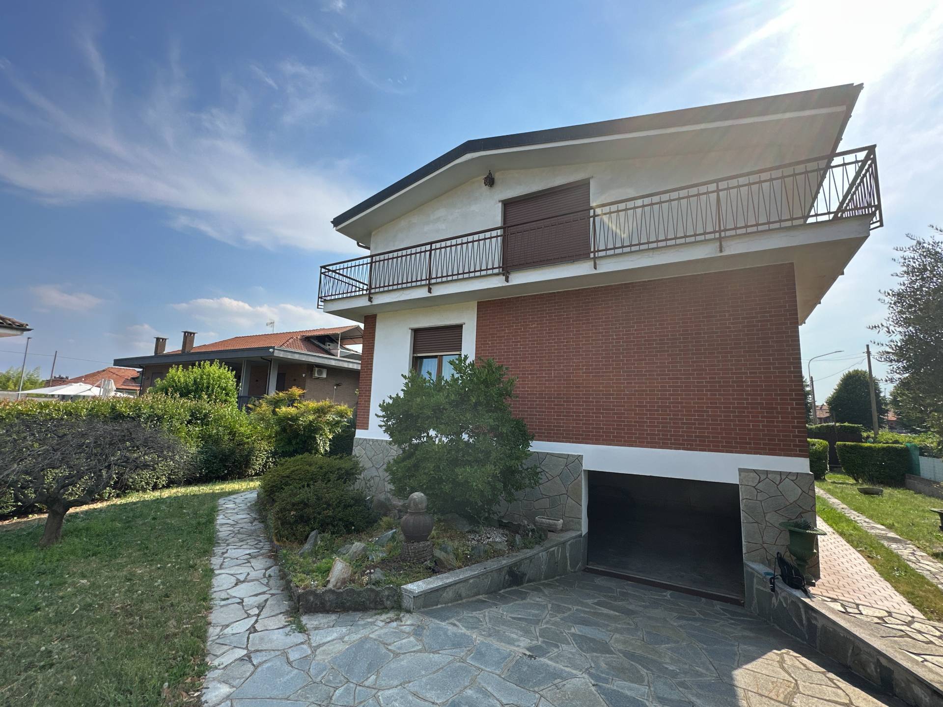 In zona residenziale tranquilla e verdeggiante, composta prevalentemente da villette, comoda ai mezzi pubblici, alla tangenziale e all’aeroporto di Torino, proponiamo villa indipendente su quattro lati, ideale per chi cerca spazi generosi, privacy e versatilità abitativa.