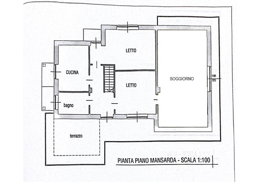 Piano mansardato – circa 135 mqSecondo appartamento con ingresso indipendente, facilmente collegabile internamente al piano sottostante.