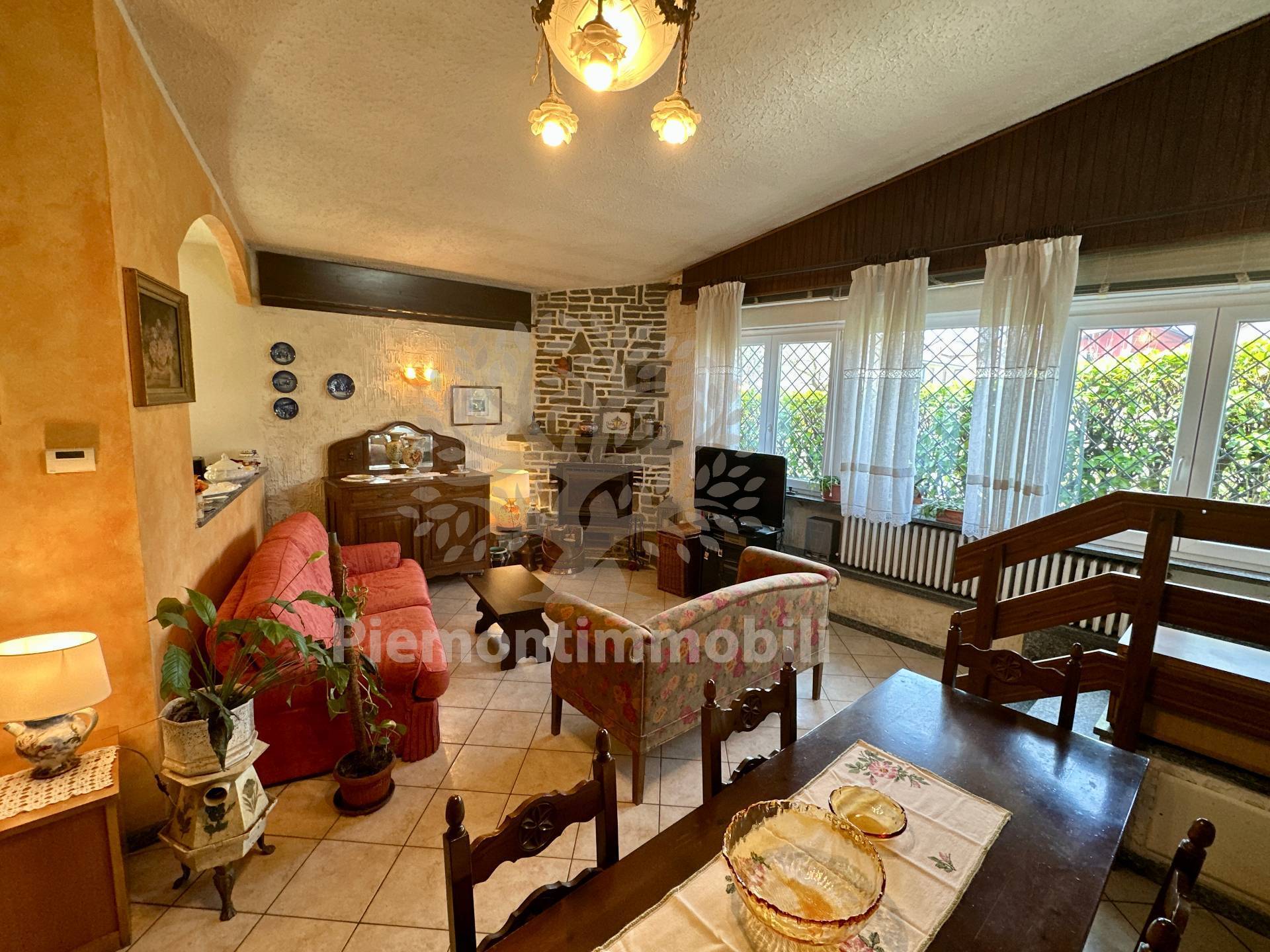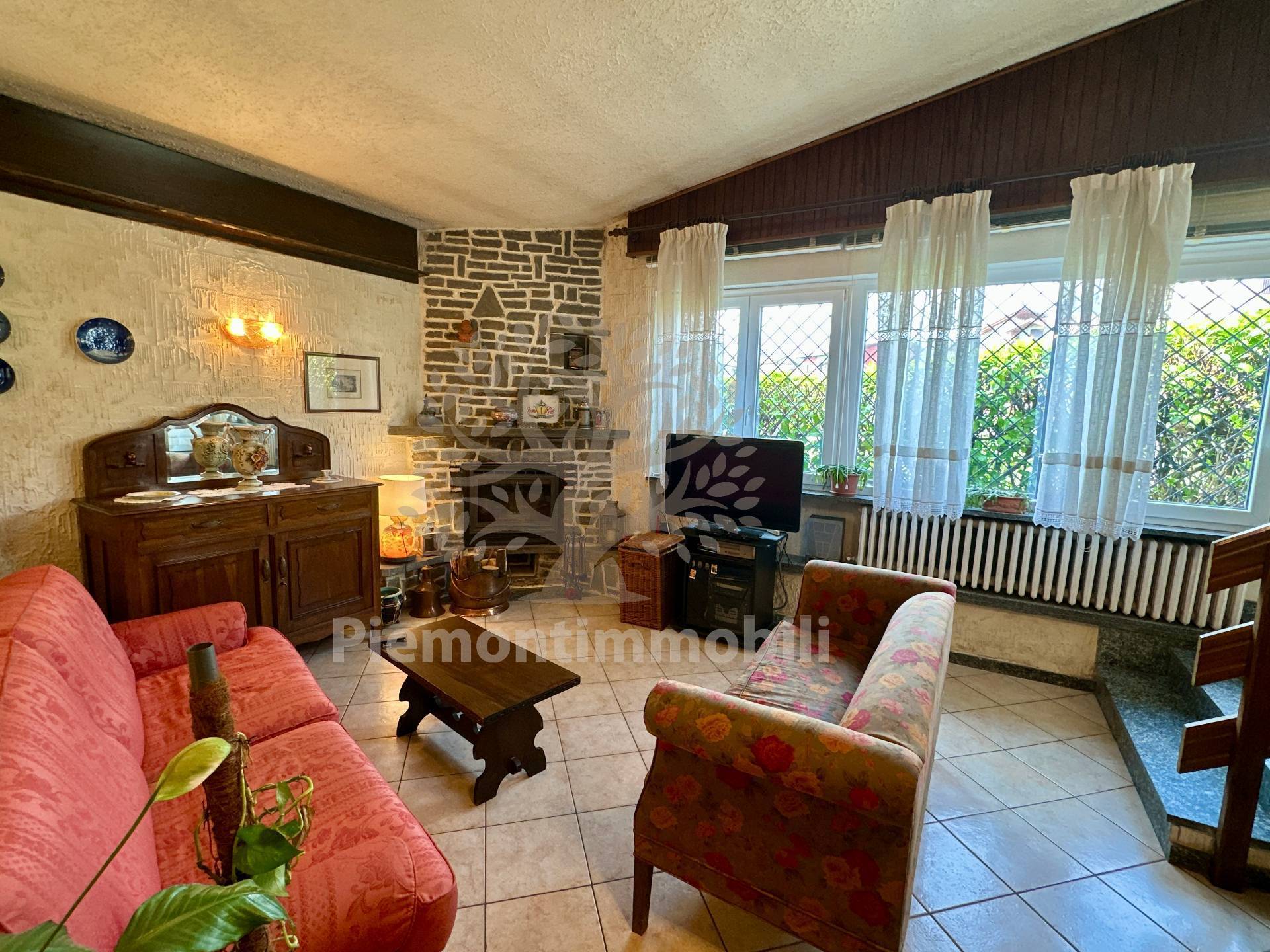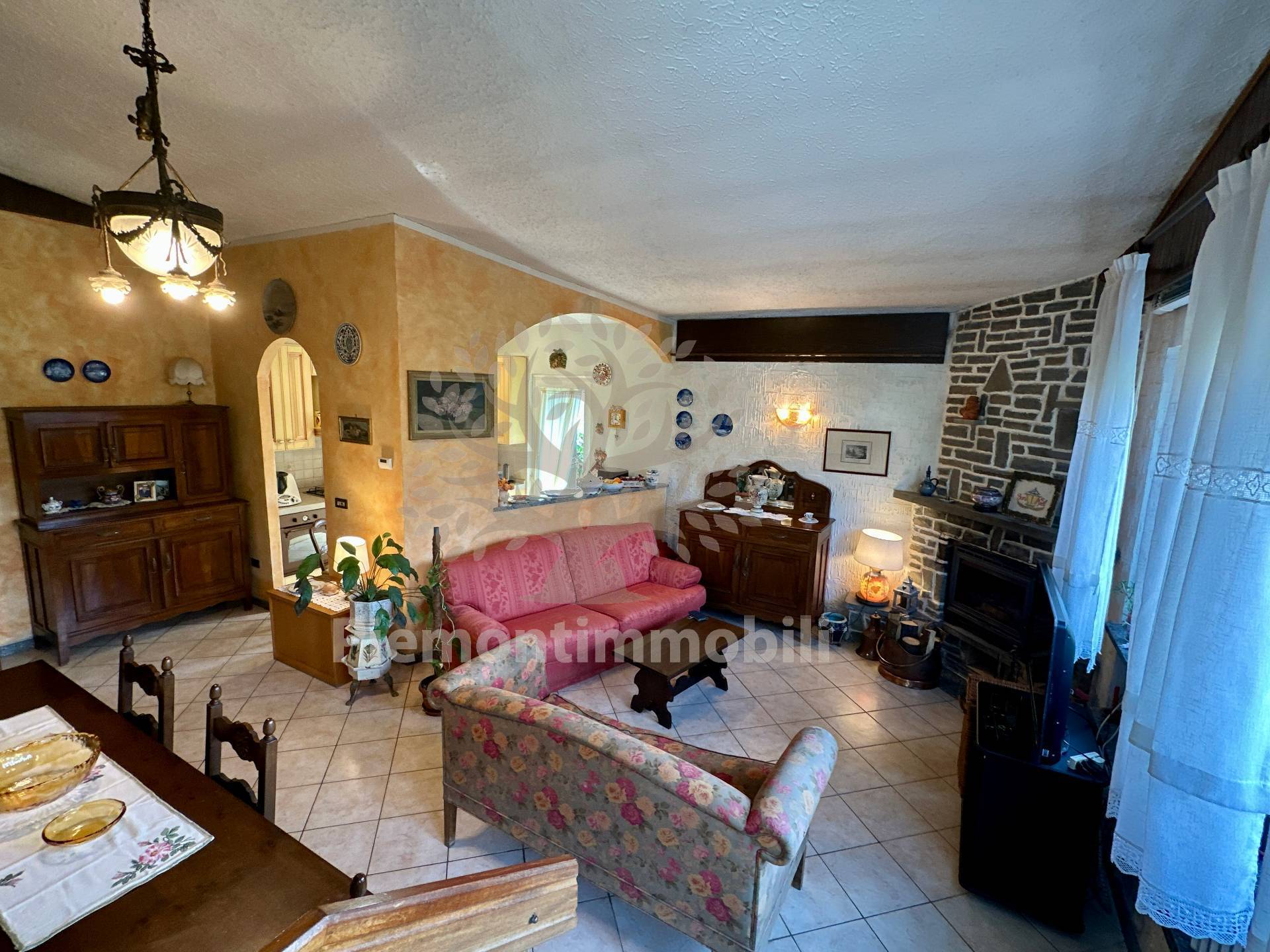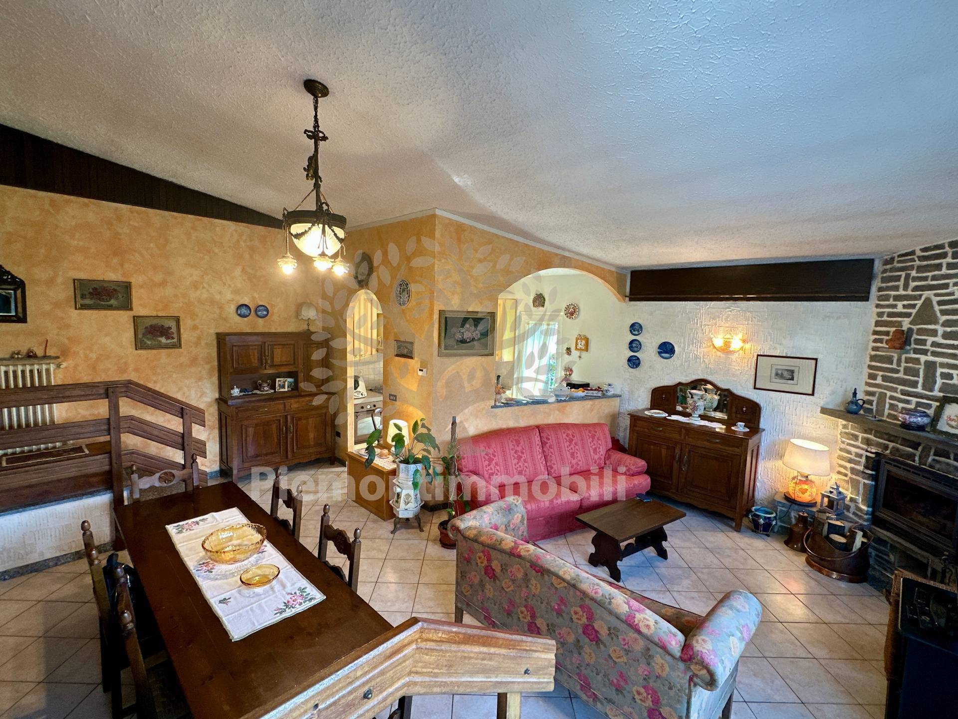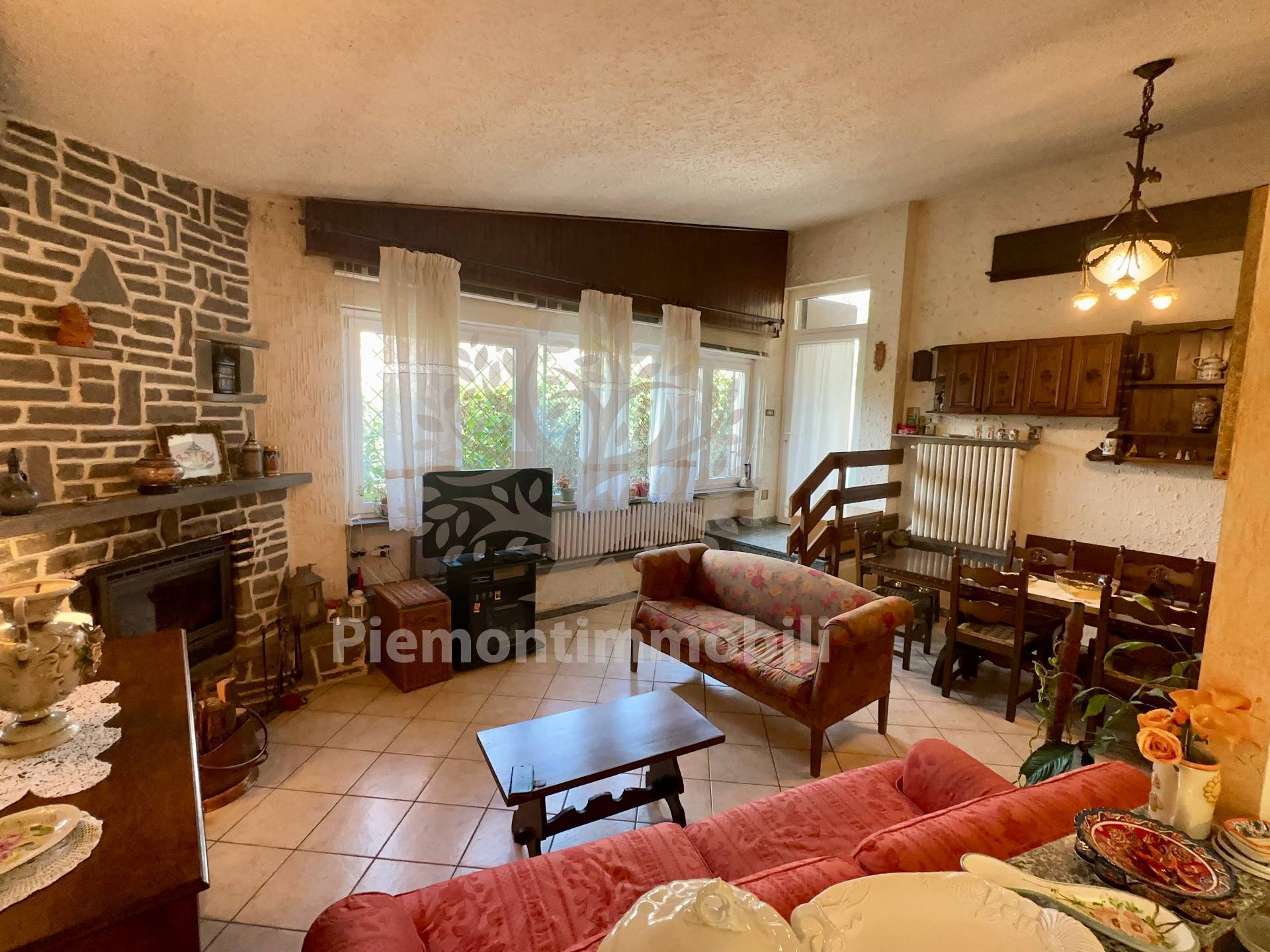 Ingresso su ampio soggiorno con camino a legna
